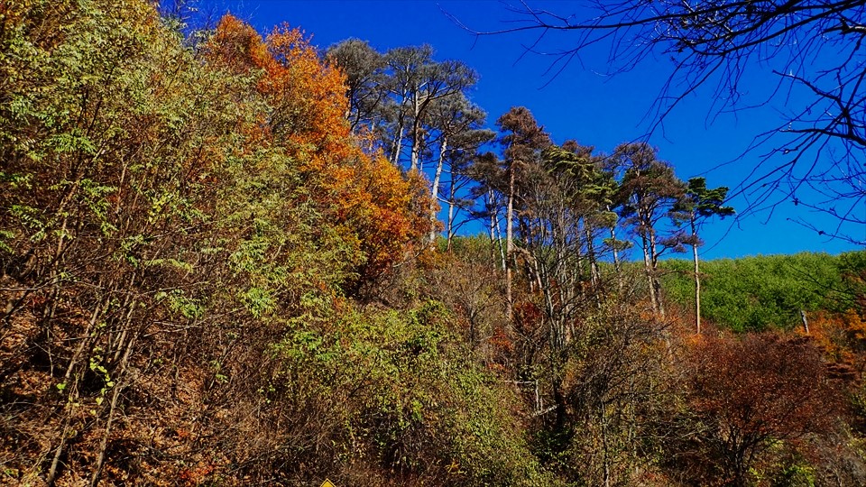 <山の神を過ぎ、歩道を進む…このあたりにも松枯れが目立つ>